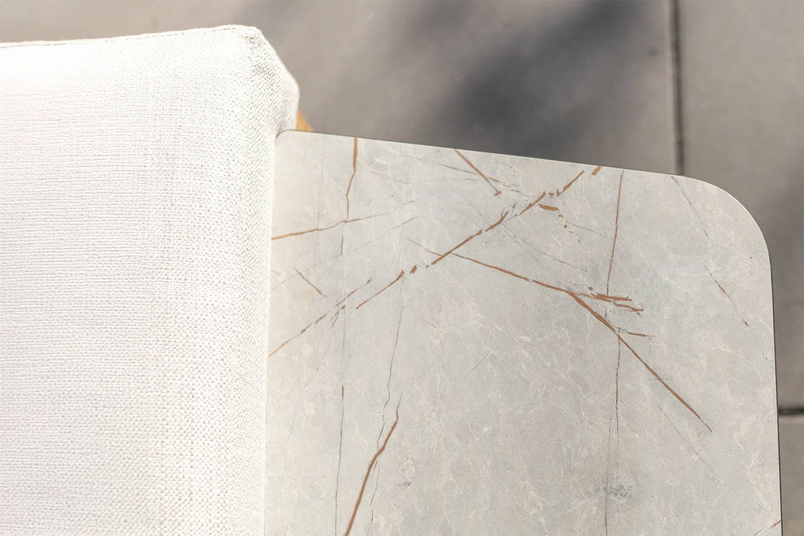 Boční stolek LOUNGE zaujme jemnou elegancí a jednoduchou formou. Štíhlá deska imitující mramor dokonale ladí se světle šedým rámem a vytváří harmonické spojení přírodních akcentů a současného stylu. Tento výjimečný kousek podtrhne charakter každé aranžmá – jak moderního, tak klasického.