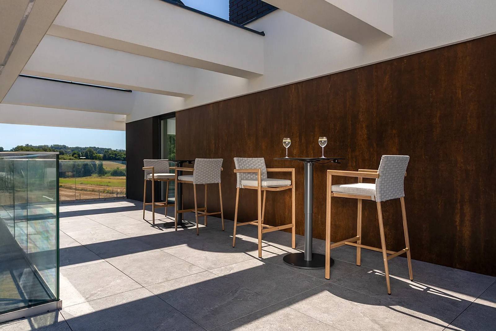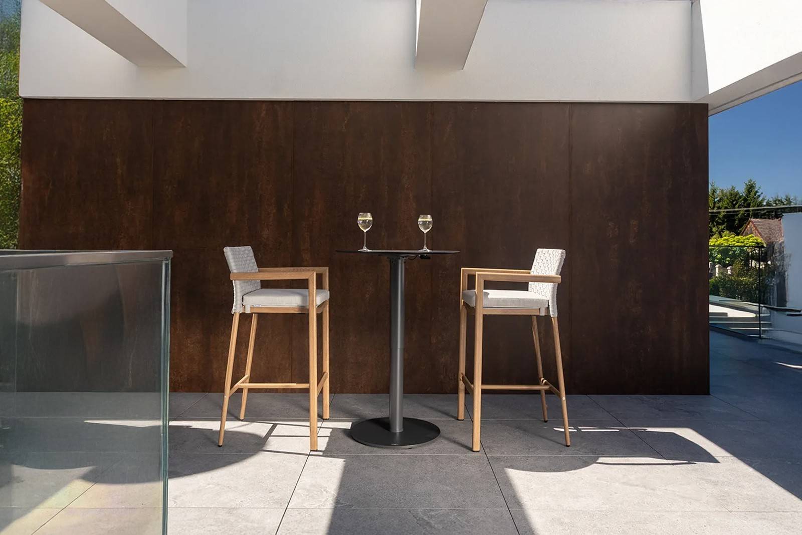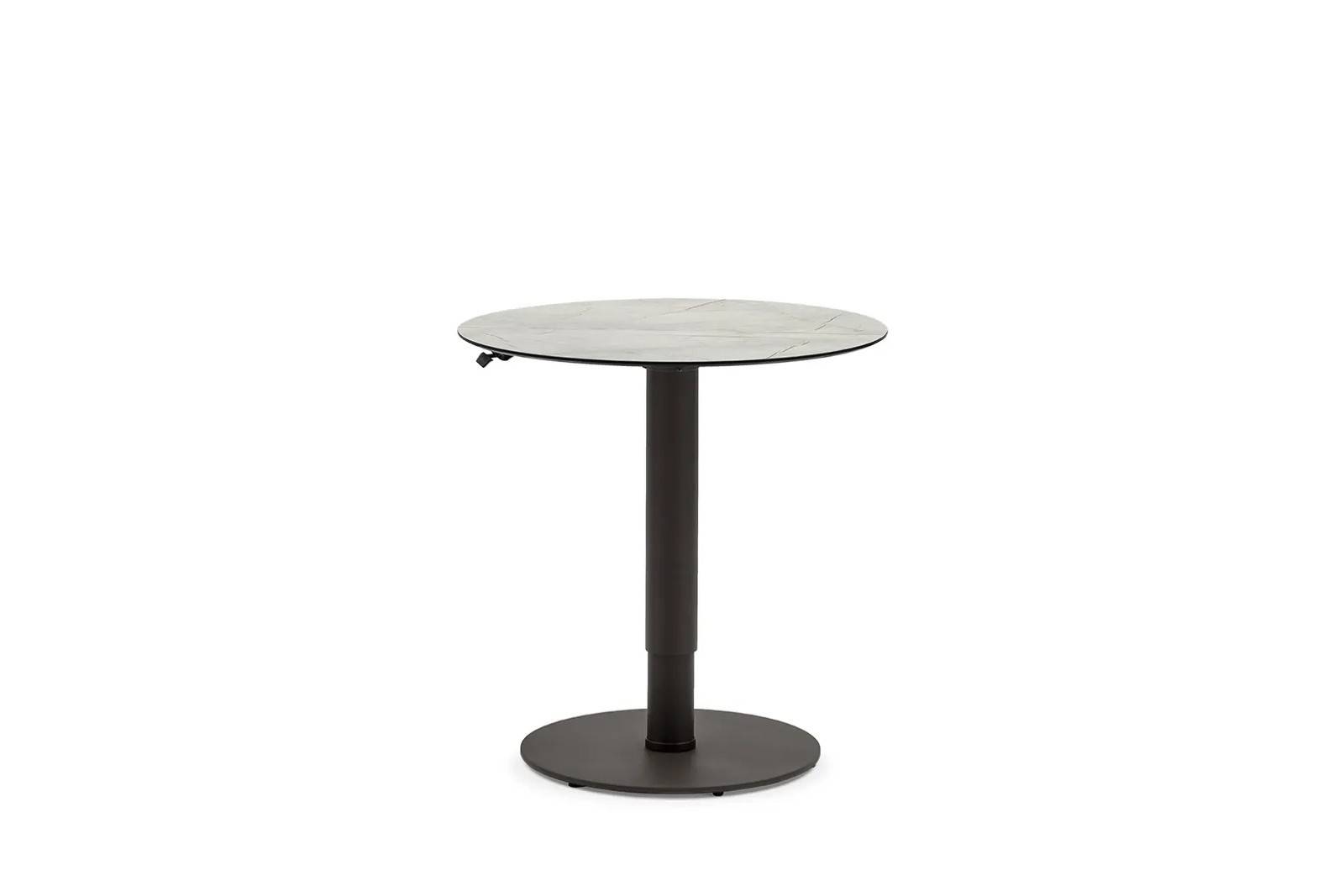 Konferenční stolek s nastavitelnou výškou LOUNGE se skvěle hodí jako středobod relaxační zóny na čerstvém vzduchu. Spojuje pohodlí s luxusním vzhledem a stane se elegantním i praktickým doplňkem každého moderního exteriéru.