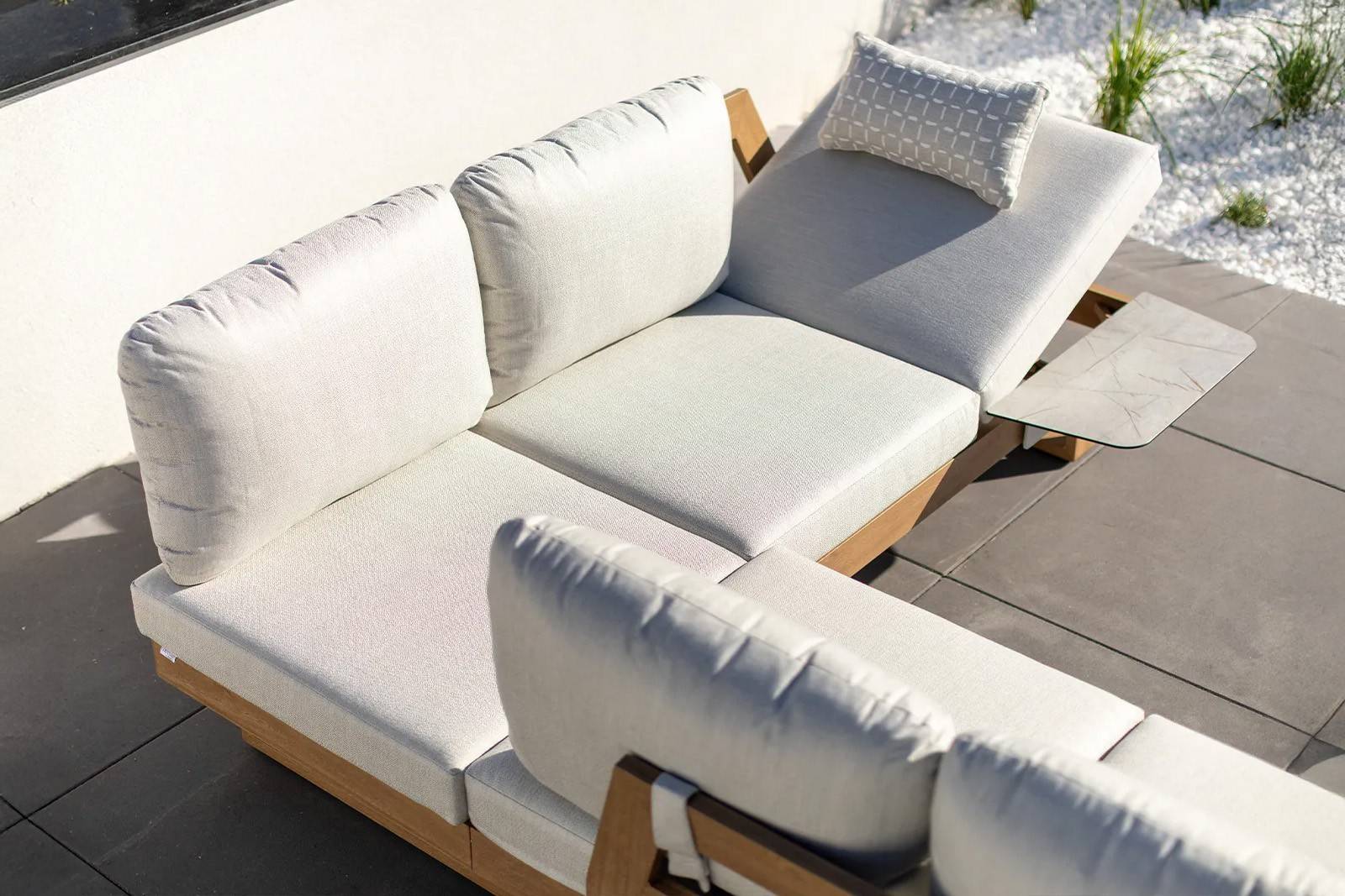 Souprava Wings obsahuje dvě terasové pohovky a dva boční stolky Lounge. Vytvoří tak ucelené posezení pro 4–6 osob, které se dokonale hodí jak pro každodenní využití, tak i pro elegantní zahradní párty.