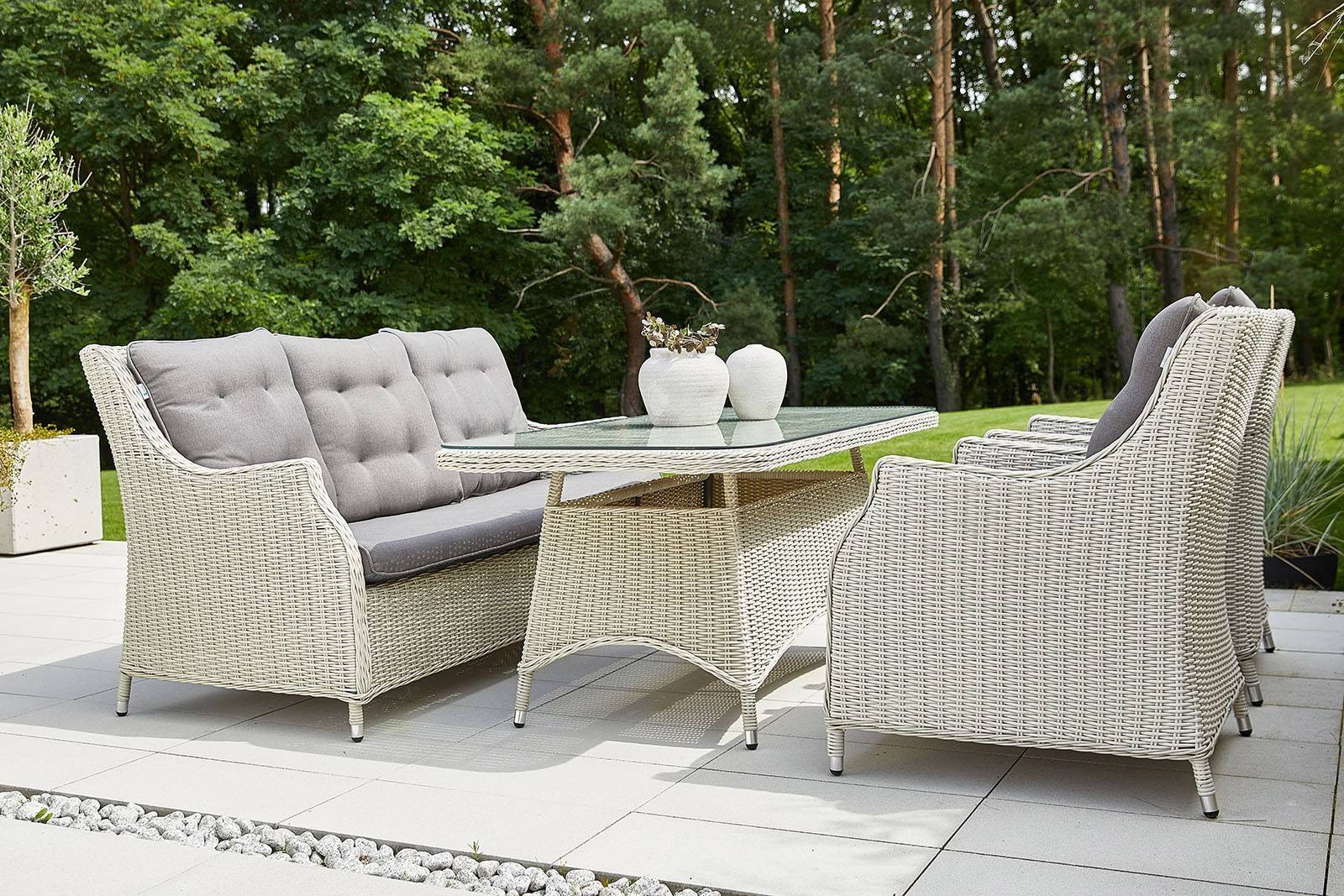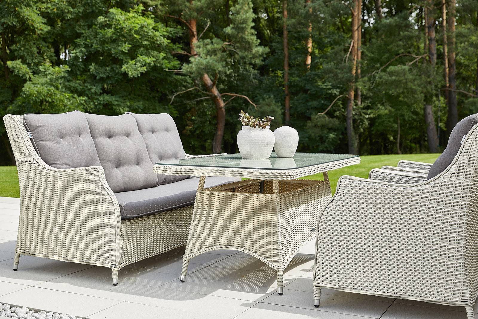 Ratanový zahradní nábytek SIENA II Royal se bude skvěle hodit na střední a velké plochy. Vypadá skvěle na pozadí zeleně, umožňuje Vám relaxovat a cítit skutečný luxus. Sada obsahuje elegantní, tvarově tvarovanou pohovku, dvě pohodlná stylová křesla a obdélníkový konferenční stolek s tvrzeným sklem. Pohodlná pohovka se bude skvěle hodit pro každodenní použití i pro setkání s rodinou a přáteli. Křesla poskytují další sezení, jsou dobře tvarovaná a relaxační.