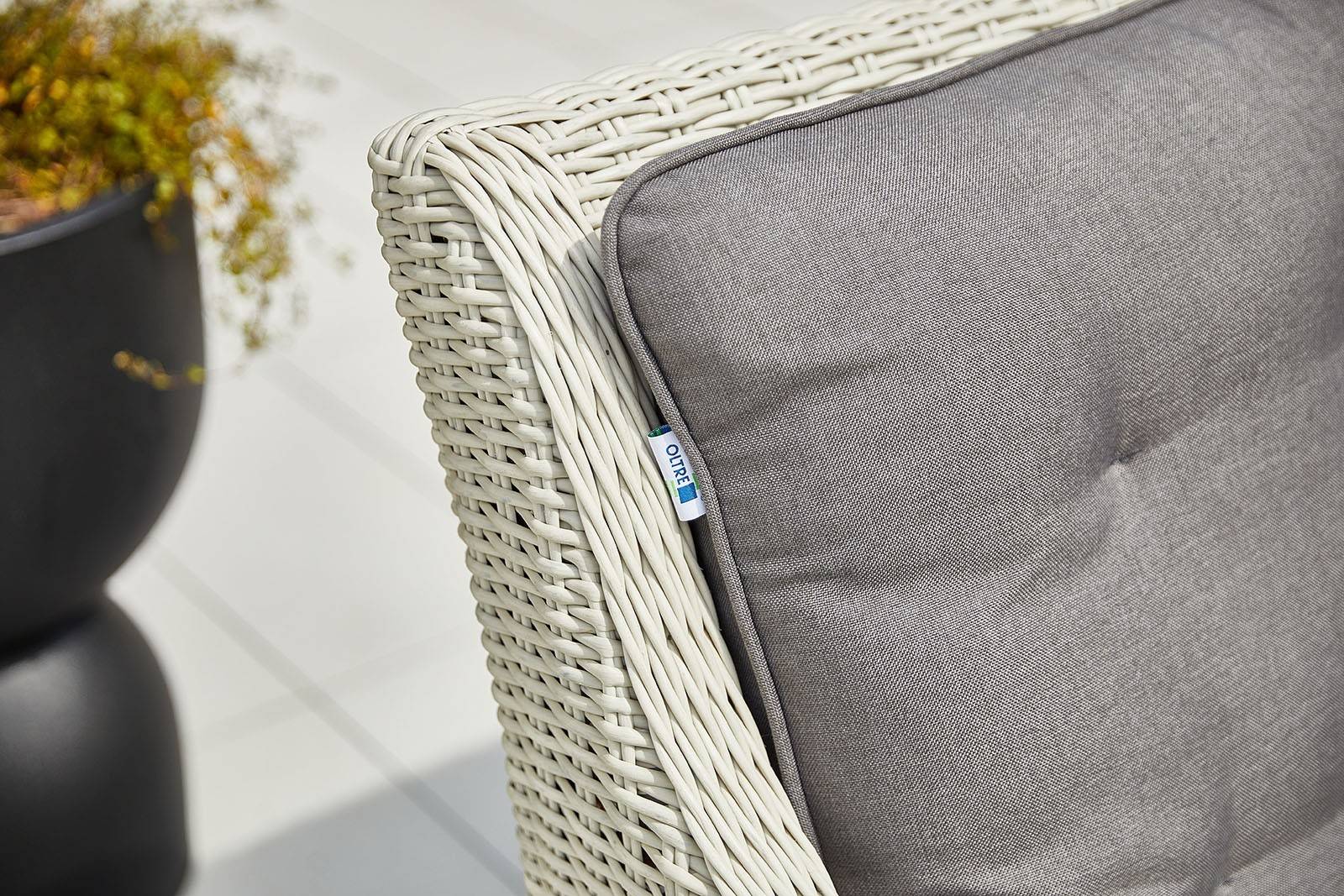 Sada SIENA II byla vyrobena výhradně z těch nejkvalitnějších materiálů. Hliníková konstrukce je lehká a odolná, oplet je odolný vůči vnějším faktorům. Sedáky a opěradla jsou vyrobeny z odolné čalounické pěny a tvoří vynikající trojici, která přežije neporušená po mnoho let. Polštáře jsou vybaveny systémem Quick dry, který odvádí přebytečnou vodu a vlhkost ven. Díky tomu se textilie staly ještě funkčnějšími a praktičtějšími.